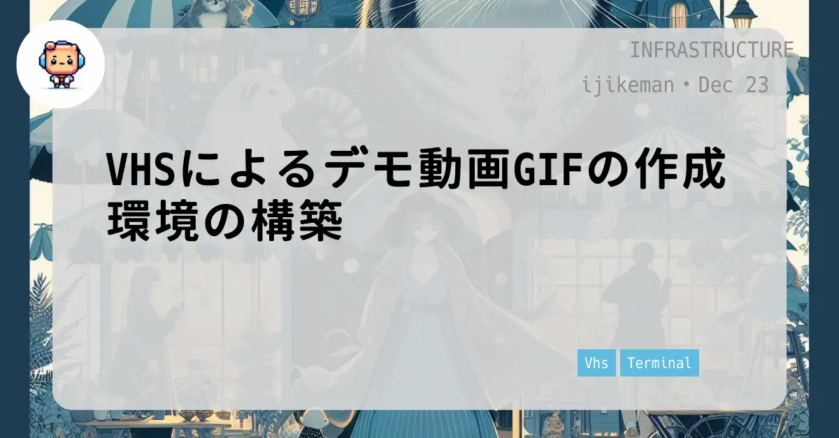 このページでわかること ターミナル操作を自動録画する「VHS」のUbuntuへの導入手順 VHS実行時のChromium/Sandboxエラーの回避方法 関連記事 VHSによるデモ動画GIFの作成環境の構築 VHSの設定ファイルからターミナル動画Gifを作成する 経緯 今までターミナルのキャプチャーをWindowsのSnipping Toolを使ってたが、コマンド失敗時の取り直し等 時間がかかるので、調査したところVHSなるものを見つけたので調査検証した結果を残しておく。 執筆時の環境とバージョン Ubuntu: 22.04 VHS: v0.10.0 公式 Githubリポジトリ 環境構築 1. デモ動画作成ツール「VHS」の導入 (Ubuntu 22.04) ターミナル操作を自動化し、GIFアニメーションとして記録できるVHSをインストールします。 依存パッケージ(ttydとffmpeg)のインストール sudo apt update sudo apt install -y ttyd ffmpeg 2. Chromiumのインストール VHS実行時、初回ブラウザインストール後に以下のエラーが発生することがあります。 このエラーを回避するため、システムにChromiumを明示的にインストールする必要があります。 could not launch browser: [launcher] Failed to get the debug url: ... No usable sandbox! Chromiumのインストール方法 以下のいずれかの方法でインストールします。 [debパッケージから(Google Chrome)] wget https://dl.google.com/linux/direct/google-chrome-stable_current_amd64.deb -O /tmp/google-chrome-stable.deb sudo apt install /tmp/google-chrome-stable.deb -y [Snapからインストール] sudo snap install chromium --classic --channel latest/stable 3....